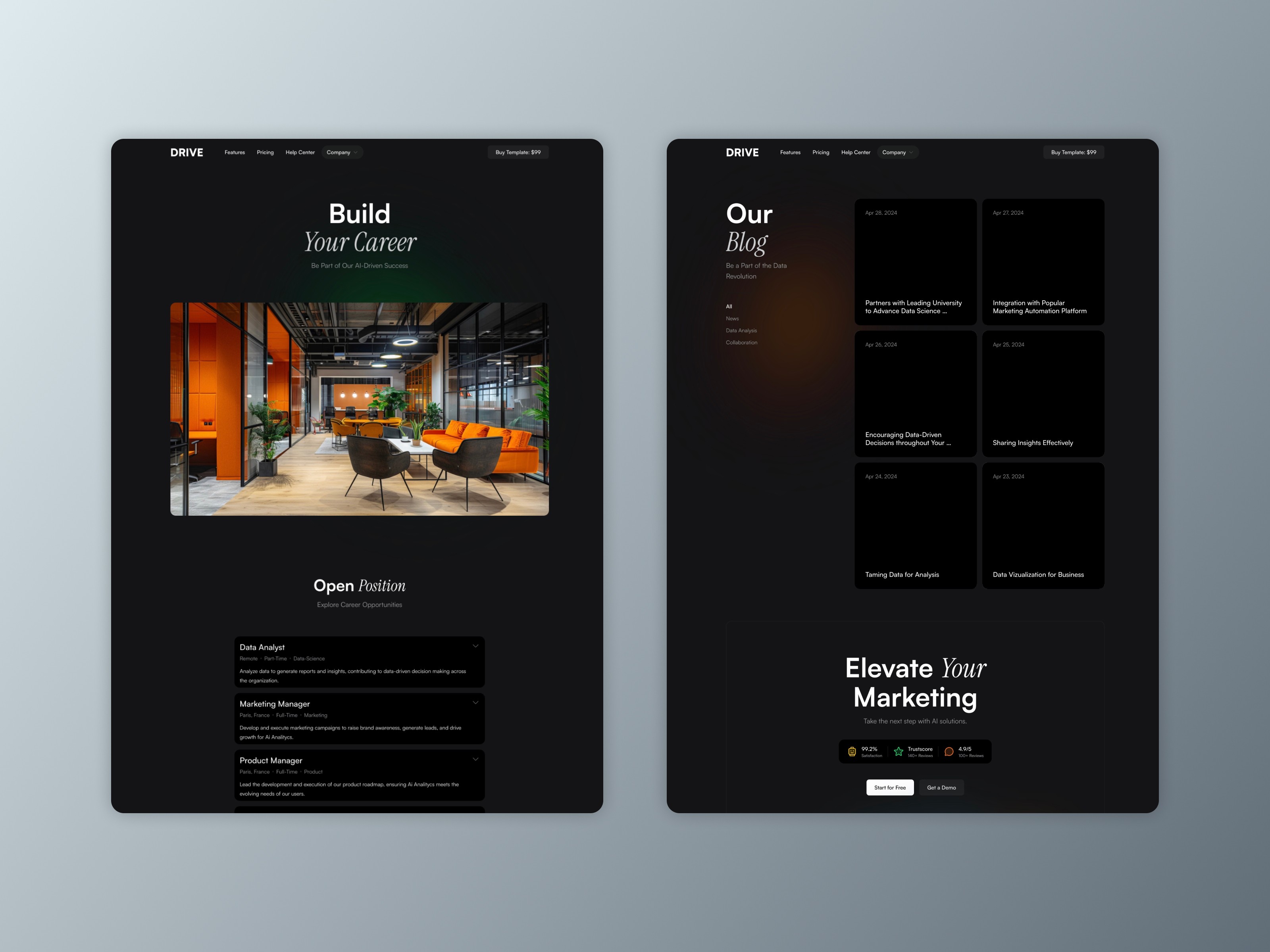 Drive is a premium Framer SaaS template for AI, fintech, and modern software startups.