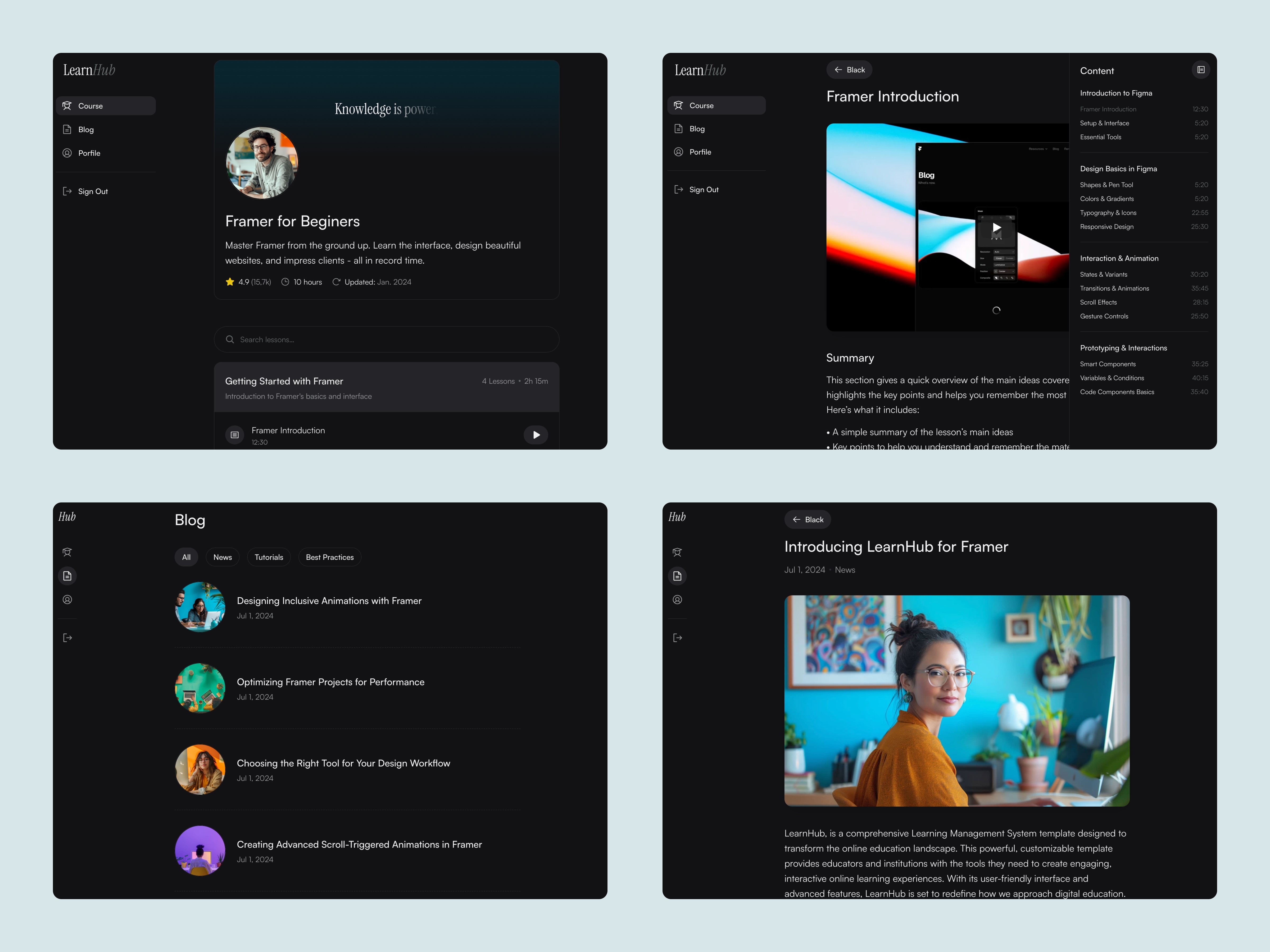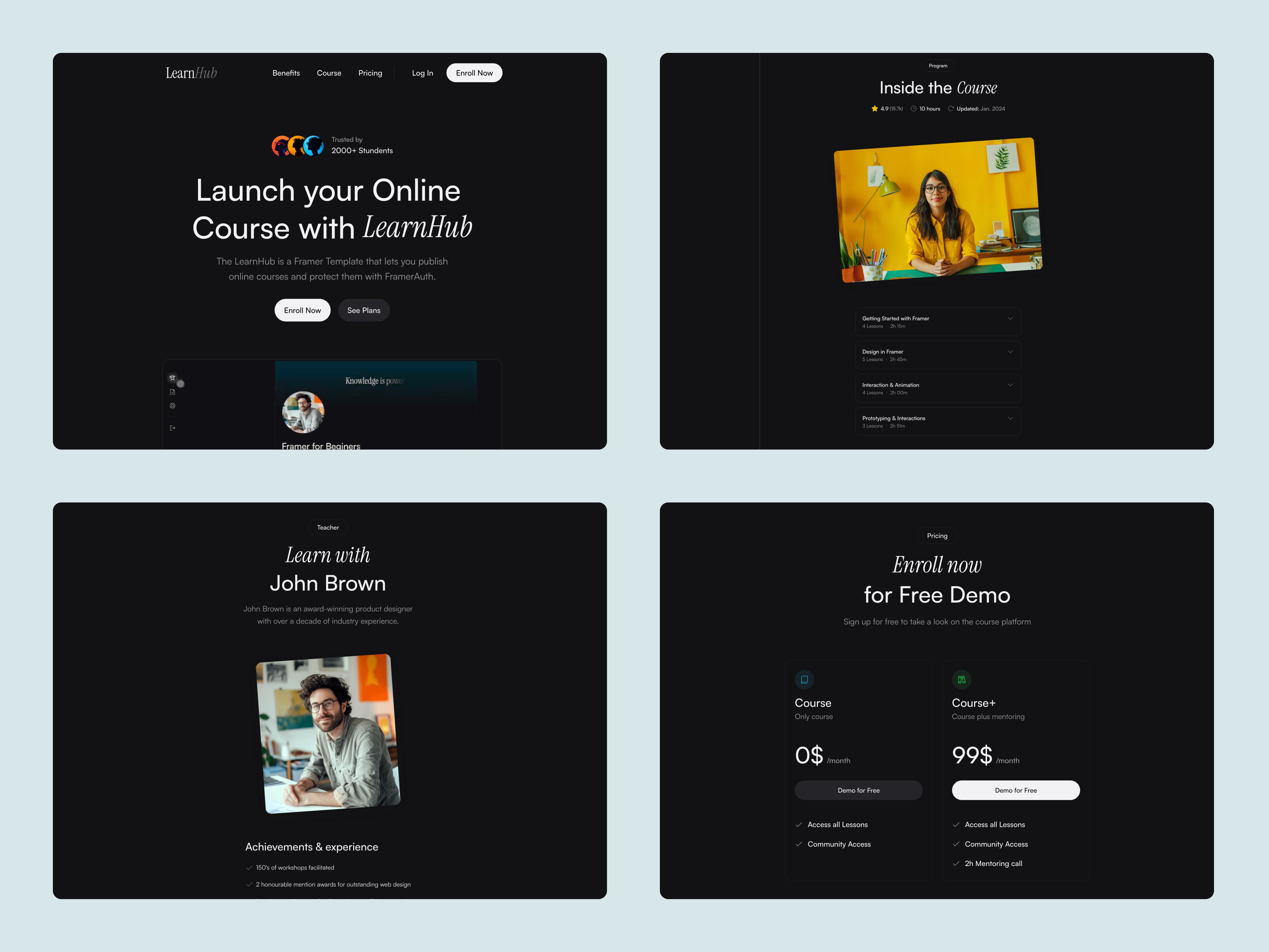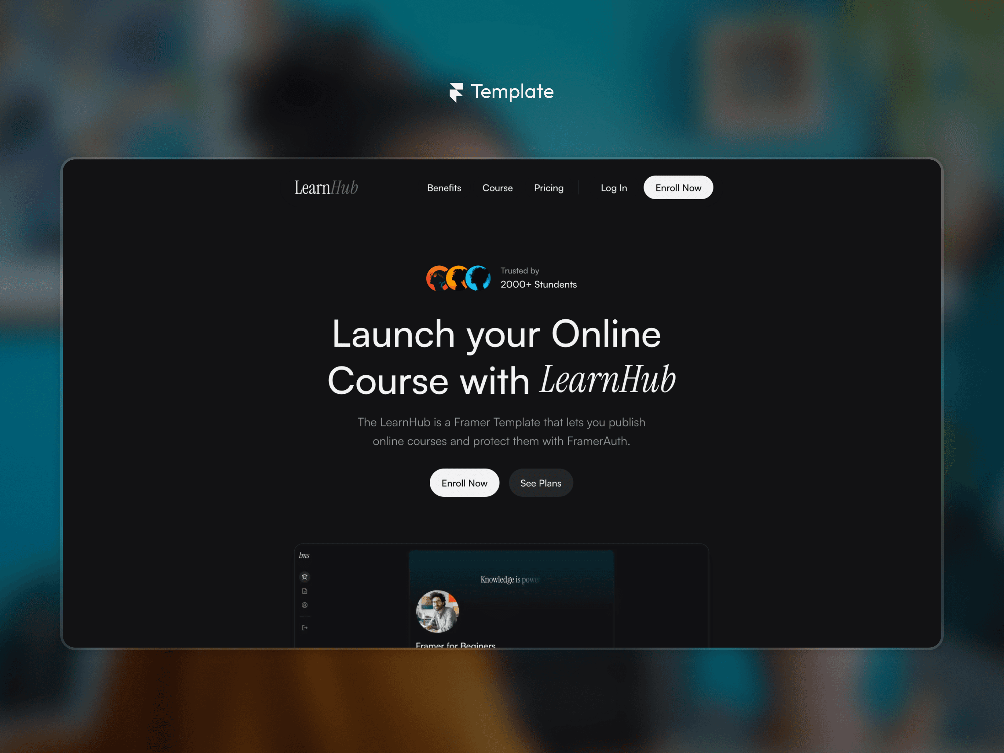 Framer template that helps course creators launch and manage online education platforms.